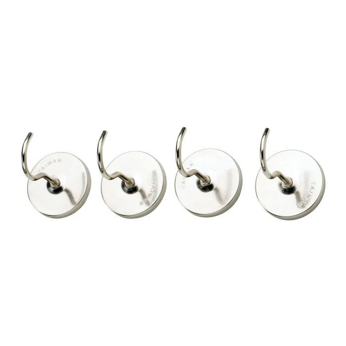 This hookssafely hang, store, and organize items conveniently within reach, yet safely out of the way until needed. The super strong magnets grip securely (up to 8-ounces)and easily release for repositioning. Perfect for hanging kitchen utensils, oven mitts, pot holders, car keys, and larger items that won’t fit in drawers. Great in the office, workshop, garage, camper, and anywhere clutter needs wrangling.